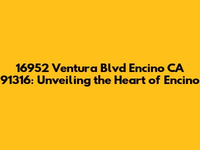 Hey guys! Let's dive into everything you need to know about 16952 Ventura Blvd, Encino, CA 91316. This address isn't just a set of numbers; it's a vibrant hub nestled in the heart of Encino, California. Whether you're looking to visit, explore business opportunities, or simply learn more about the area, you’ve come to the right place. Encino itself is a gem within the San Fernando Valley, known for its blend of suburban tranquility and urban accessibility. Understanding the significance of this location requires a closer look at its surroundings, the businesses it houses, and the overall vibe of the area. So, buckle up as we explore what makes 16952 Ventura Blvd a notable spot in Encino.