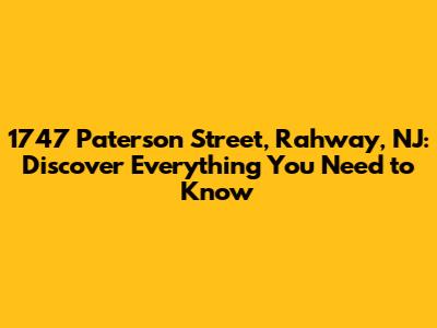 Hey guys! Today, we're diving deep into 1747 Paterson Street, Rahway, NJ. Whether you're looking to buy, sell, or just curious about this address, we've got you covered. This article will provide a comprehensive overview of the property, neighborhood, and all the essential details you need. So, let's get started and explore what makes 1747 Paterson Street a place of interest!