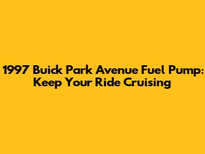 Understanding the 1997 Buick Park Avenue Fuel Pump: The Lifeline of Your Engine
