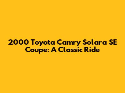 Hey guys! Let's dive into a detailed exploration of the 2000 Toyota Camry Solara SE Coupe. This car isn't just a ride; it's a statement of style and reliability from the early 2000s. We’ll cover everything from its engine and performance to its interior, exterior, and overall driving experience. So, buckle up and let’s get started!