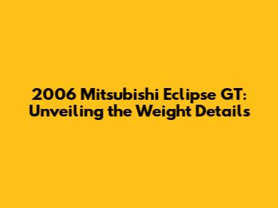 Hey car enthusiasts! Today, we're diving deep into the specifics of the 2006 Mitsubishi Eclipse GT, focusing particularly on its weight. This might seem like a small detail, but it plays a massive role in the car's overall performance, handling, and even fuel efficiency. Understanding the weight distribution and curb weight of your vehicle can significantly enhance your driving experience and help you make informed decisions about modifications and maintenance. So, let's buckle up and get into the nitty-gritty details about the 2006 Mitsubishi Eclipse GT's weight.