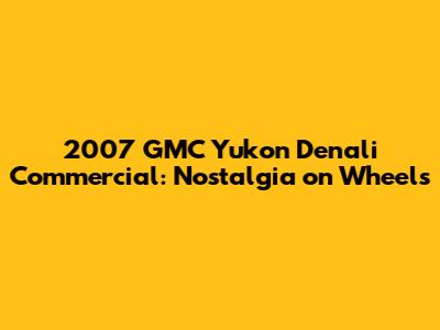 2007 GMC Yukon Denali Commercial: A Blast From The Past