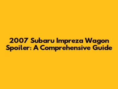 2007 Subaru Impreza Wagon Spoiler: A Comprehensive Guide
