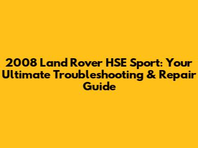 Troubleshooting Tips for Your 2008 Land Rover HSE Sport