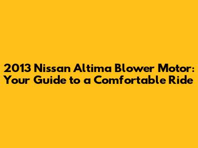 2013 Nissan Altima Blower Motor: Troubleshooting & Repair