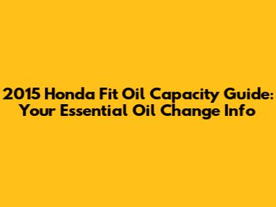 2015 Honda Fit Oil Capacity Guide: Everything You Need