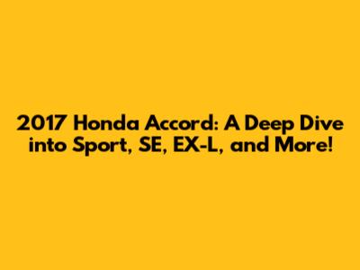 The 2017 Honda Accord remains a highly sought-after mid-size sedan, offering a compelling blend of reliability, fuel efficiency, and features. The Sport, SE, and EX-L trims each provide a unique driving experience and cater to different preferences. Whether you are seeking a sporty ride, extra comfort, or a luxurious driving experience, there is an Accord trim for you. Remember to consider your personal needs and preferences when choosing a trim level, and always conduct thorough research and inspection before making a purchase. Happy driving!
