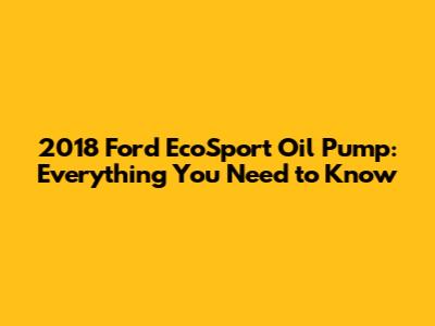 2018 Ford EcoSport Oil Pump: Cost, Replacement & Guide