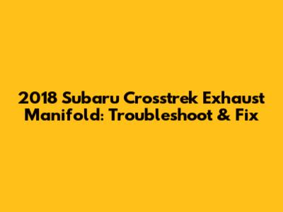 2018 Subaru Crosstrek Exhaust Manifold: Troubleshoot & Fix