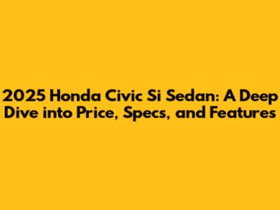 2025 Honda Civic Si Sedan: Price, Specs, And Features