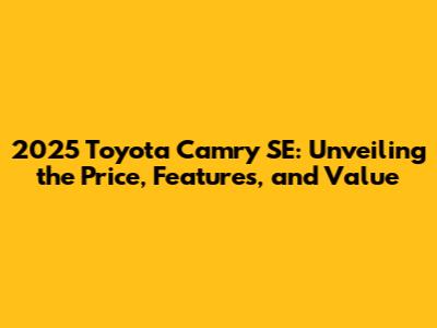 2025 Toyota Camry SE: Price, Features, And Value