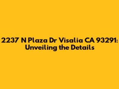 Alright, guys, let's dive into everything you need to know about 2237 N Plaza Dr, Visalia, CA 93291. This address isn't just a bunch of numbers and letters; it represents a specific location with its own story, characteristics, and potential. Whether you're a prospective buyer, a curious neighbor, or just doing some research, understanding the details of this property is super important. We're going to break down everything from the basic facts to the surrounding area, so you get a complete picture. So, buckle up and let's get started!