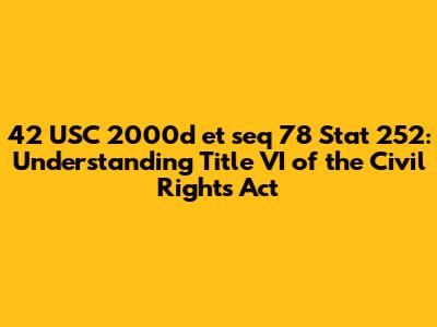 Alright, let's decode this legal jargon. "42 USC 2000d et seq" is how lawyers refer to Title VI of the Civil Rights Act using the United States Code. "78 Stat. 252" tells us where to find the original law in the Statutes at Large, which is where all laws passed by Congress are officially recorded. Basically, it's like a library reference number for the law. Title VI itself is relatively short, but its impact has been enormous. It's the reason why schools can't have segregated classrooms, why hospitals must provide services to everyone regardless of their background, and why a whole host of other federally funded programs must treat everyone equally. Without this, numerous programs could potentially discriminate against individuals, undermining the principles of fairness and equality. This is why understanding the core tenets of 42 USC 2000d et seq is crucial for anyone involved in or affected by federally funded programs.