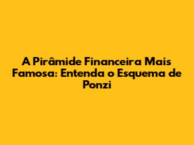 A Pirâmide Financeira Mais Famosa: Entenda A 'Esquema De Ponzi'