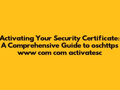 Now, let's talk about oschttps www com com activatesc. This specific URL likely refers to a process or a page related to activating a security certificate for a website hosted on or associated with "www com." The "activatesc" part probably stands for "activate security certificate." Getting this right is crucial for ensuring your website visitors trust you and feel safe when interacting with your site. No one wants to see a big, scary warning message in their browser saying, "This site is not secure!" That's a surefire way to scare away potential customers and damage your reputation. The activation process typically involves a few key steps, starting with obtaining the certificate from a Certificate Authority (CA). Once you've got your certificate, you'll need to install it on your web server and then configure your server to use the certificate for secure connections. This might sound a bit technical, but don't worry, we'll break it down. The main goal here is to make sure that your website uses HTTPS instead of HTTP, which is the unencrypted version. This is where the magic happens, turning your site from a potential security risk into a fortress of digital safety. So, stay tuned as we walk through the ins and outs of activating your security certificate and keeping your online presence secure and trustworthy.