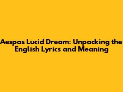 Aespa Lucid Dream: English Lyrics & Meaning Explained