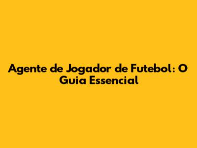 Agente De Jogador De Futebol: O Guia Essencial