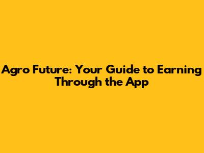 Agro Future: Your Guide To Earning Through The App