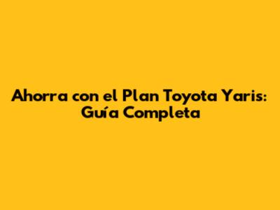 Ahorra Con El Plan Toyota Yaris: Guía Completa