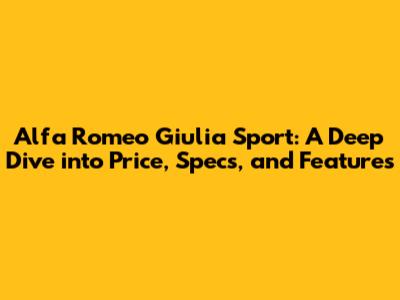 Alfa Romeo Giulia Sport: Price, Specs, And Features