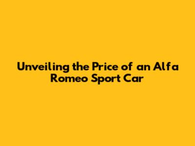 Alfa Romeo Sport Car: What's The Price Tag?