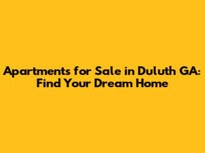 Apartments For Sale In Duluth GA: Find Your Dream Home