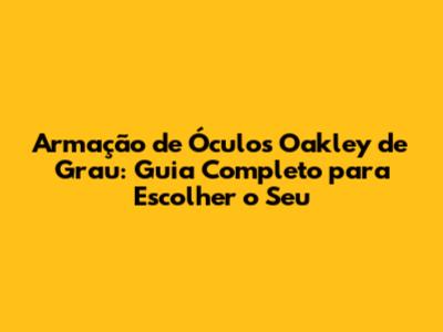 Armação De Óculos Oakley De Grau: Guia Completo Para Escolher O Seu