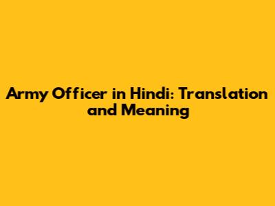 Army Officer In Hindi: Translation And Meaning