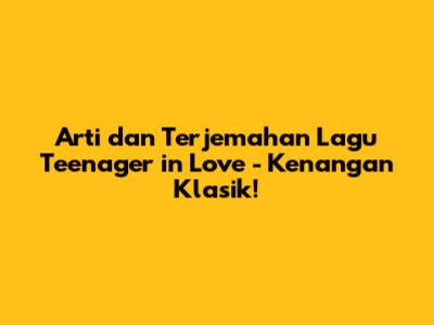 Arti Dan Terjemahan Lagu 'Teenager In Love' - Kenangan Klasik!