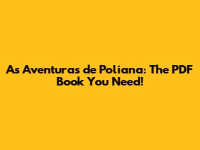 As Aventuras De Poliana: The PDF Book You Need!