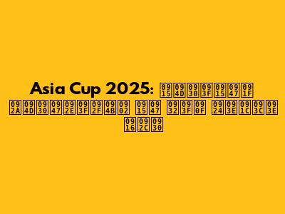 рдПрд╢рд┐рдпрд╛ рдХрдк 2025 рдХреА рдЯреАрдореЗрдВ: рдХреМрди рд╣реЛрдЧрд╛ рдЪреИрдВрдкрд┐рдпрди?