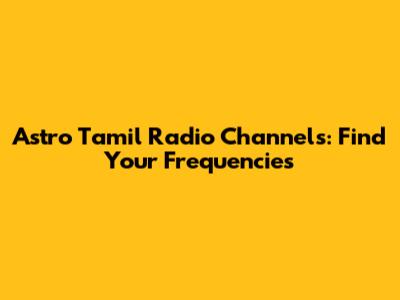 Astro Tamil Radio Channels: Find Your Frequencies
