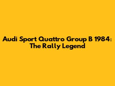 Audi Sport Quattro Group B: The 1984 Rally Legend