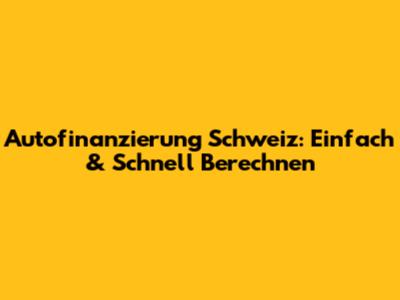 Autofinanzierung Schweiz: Einfach & Schnell Berechnen