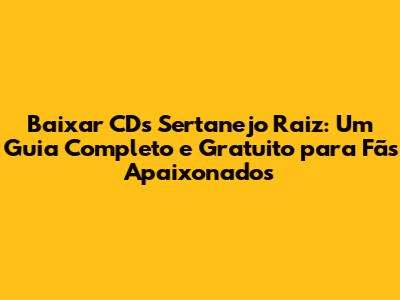 Baixar CDs Sertanejo Raiz: Guia Completo E Gratuito