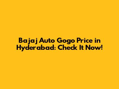Hey guys! Are you in Hyderabad and thinking about grabbing a Bajaj Auto Gogo? You're probably wondering about the price, right? Well, you've come to the right place! Let's dive into everything you need to know about the Bajaj Auto Gogo price in Hyderabad. Getting around Hyderabad can be a real hassle, but with the right auto, you can zip through the city with ease. The Bajaj Auto Gogo is a popular choice, and knowing the price is the first step in making a smart decision. We'll break down the factors influencing the cost, where to get the best deals, and what to consider before you buy. So, buckle up and let’s get started!