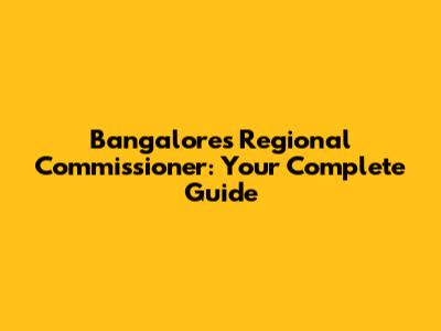 Bangalore's Regional Commissioner: Everything You Need To Know