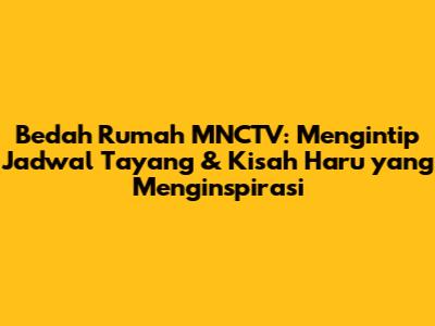 Bagi para penggemar setia Bedah Rumah, mengetahui jadwal tayang adalah hal yang sangat penting. Bedah Rumah MNCTV hari ini biasanya ditayangkan pada jadwal yang berbeda-beda, tergantung pada kebijakan stasiun televisi. Namun, umumnya, Bedah Rumah ditayangkan pada hari kerja atau akhir pekan. Untuk mendapatkan informasi jadwal tayang Bedah Rumah yang paling akurat, ada beberapa cara yang bisa dilakukan.