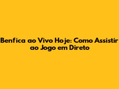 Benfica Ao Vivo Hoje: Como Assistir Ao Jogo Em Direto