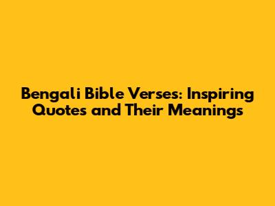Bengali Bible Verses: Inspiring Quotes And Their Meanings