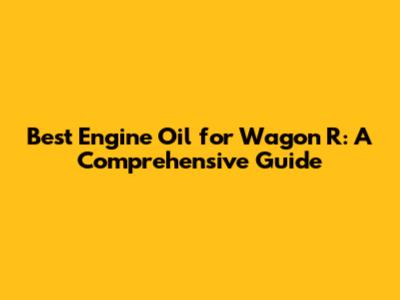 Best Engine Oil For Wagon R: A Comprehensive Guide