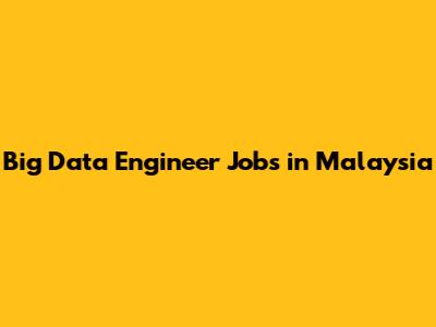 Big Data Engineer Jobs: Malaysia Opportunities