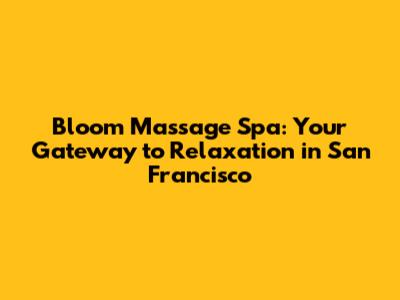 Bloom Massage Spa: Your Guide To Relaxation In San Francisco