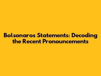 Hey everyone, let's dive into the recent statements made by Jair Bolsonaro. We're going to break down his latest pronouncements, analyzing what he said, what it might mean, and how people are reacting. This is important because understanding public figures and their communication can give us the tools to analyze the political landscape effectively. His words can have significant impacts, influencing public opinion, policy, and even social dynamics. So, buckle up; we've got a lot to unpack. The goal here isn't just to report what was said but to offer a broader view, considering the context and potential ramifications of each statement. It's like putting together a puzzle, where each statement is a piece. We want to understand the complete picture, so we can make informed decisions and form our own opinions. This also gives a way to understand the complex nature of political speech. This is how we can understand the various nuances and implications of a public figure's statements. We'll be looking into the details. We're going beyond the headlines to get a deeper understanding. Let's dig in.