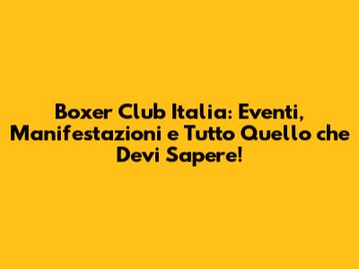 Boxer Club Italia: Eventi, Manifestazioni E Tutto Quello Che Devi Sapere!