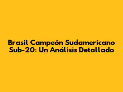 隆Hola, fan谩ticos del f煤tbol! Hoy, nos sumergimos en la emocionante traves铆a de la selecci贸n brasile帽a sub-20, explorando su camino triunfal hacia la conquista del Campeonato Sudamericano Sub-20. Prep谩rense para un viaje lleno de an谩lisis t谩cticos, momentos estelares y el brillo de j贸venes promesas que iluminan el futuro del f煤tbol brasile帽o. Analizaremos cada partido, destacando las estrategias clave, el desempe帽o de los jugadores y la pasi贸n que llev贸 a Brasil a la cima del torneo. 隆Acomp谩帽enme en esta aventura futbol铆stica!