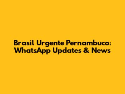 Brasil Urgente Pernambuco: WhatsApp Updates & News