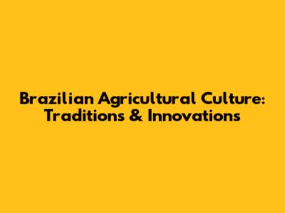 Brazilian Agricultural Culture: Traditions & Innovations