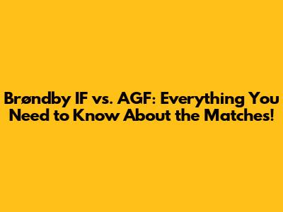 Brøndby IF vs. AGF: Everything You Need to Know About the Matches!