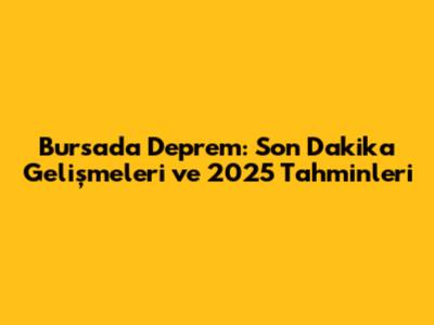 Bursa'da Deprem: Son Dakika Gelişmeleri Ve 2025 Tahminleri